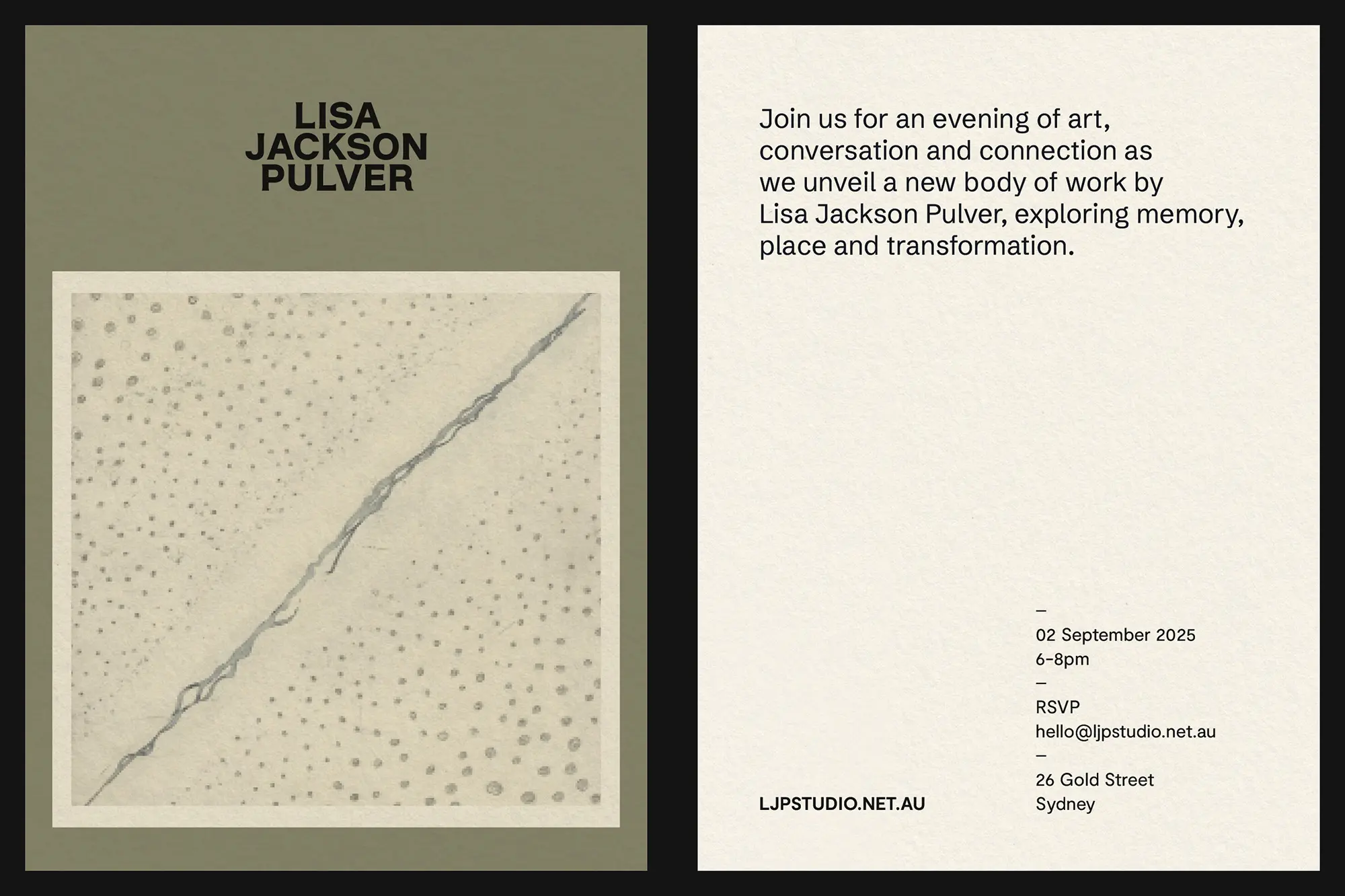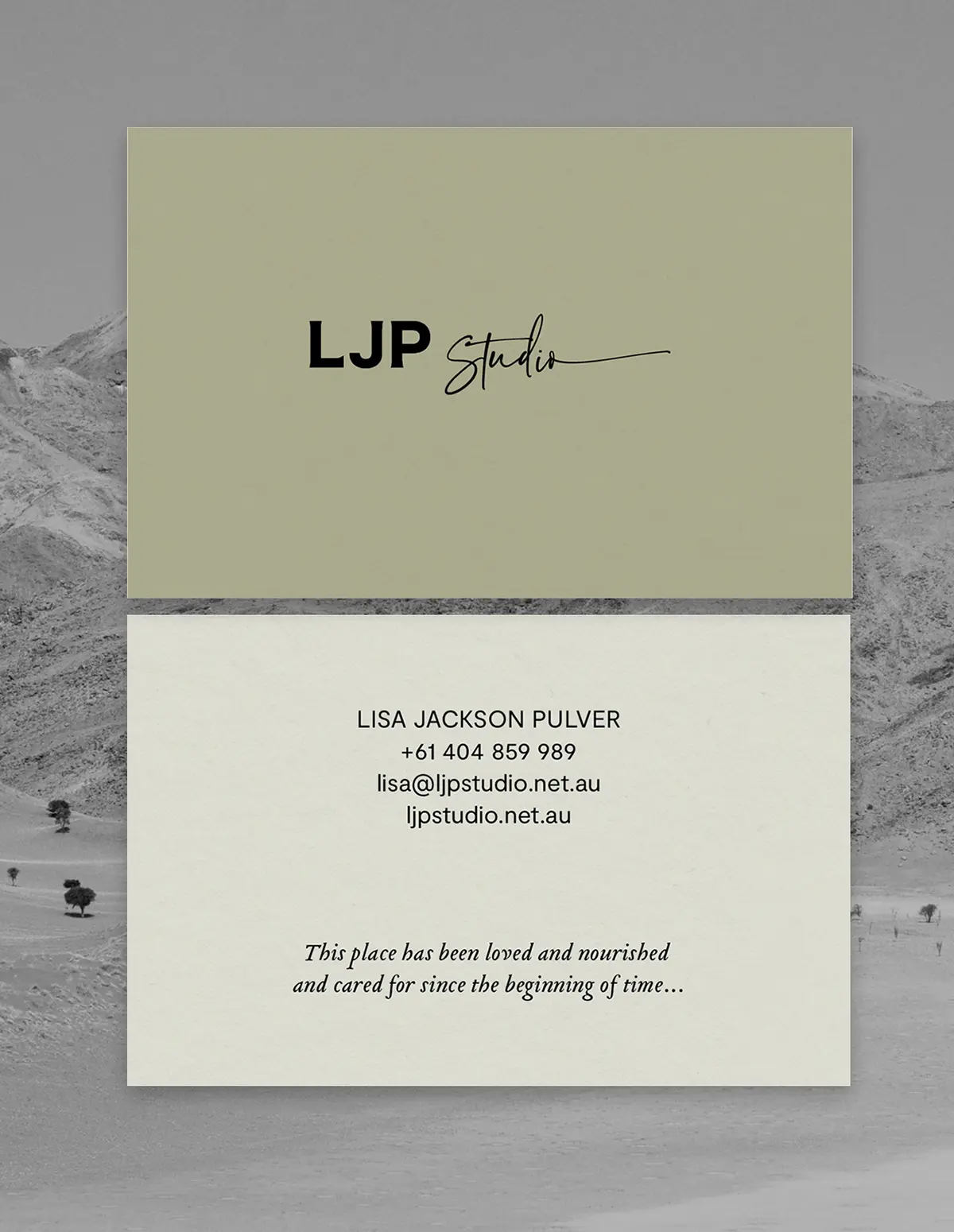 Lisa Jackson Pulver is a creative practitioner with a distinct personal voice. The brief: develop an identity that could hold that voice with confidence. Something considered, grounded, and entirely her own.