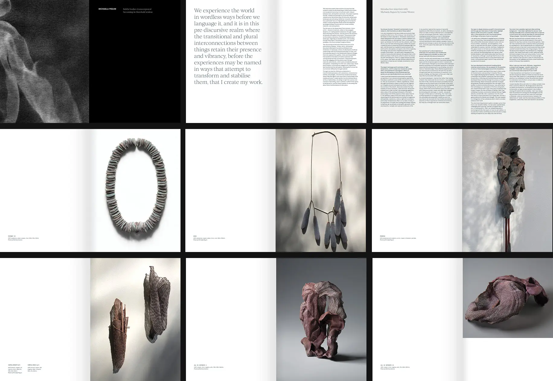 Michaela came with a complex body of work and a clear instinct about how it should live on the page.