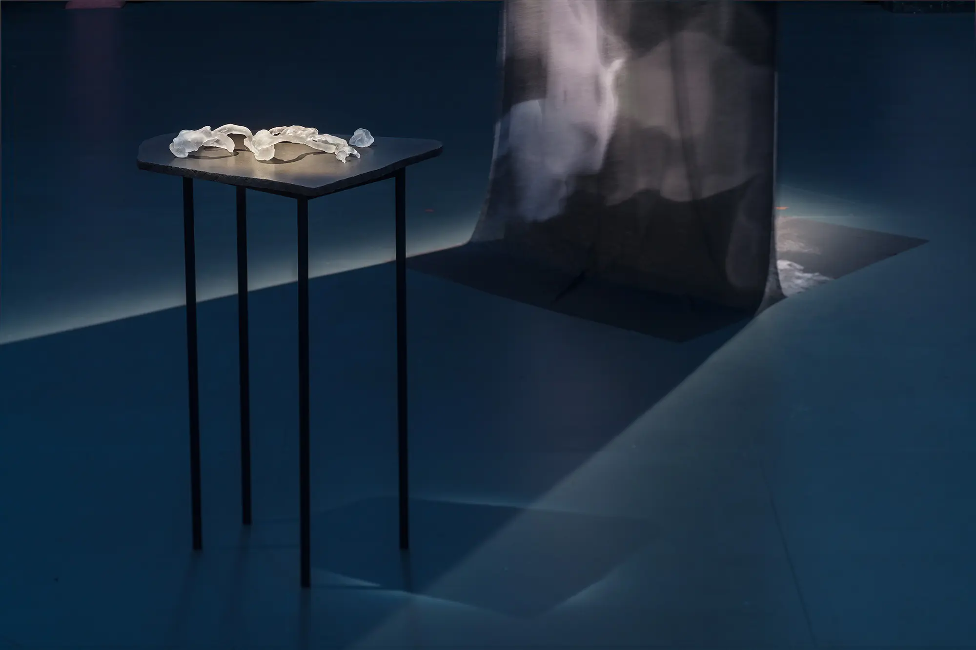 Her research moves through threshold environments. Spaces between body and landscape, material and atmosphere, where perception shifts and meaning stays open. The publication was developed alongside her PhD research and exhibition, bringing together sculpture, performance, photography and experimental materials into a single coherent experience.