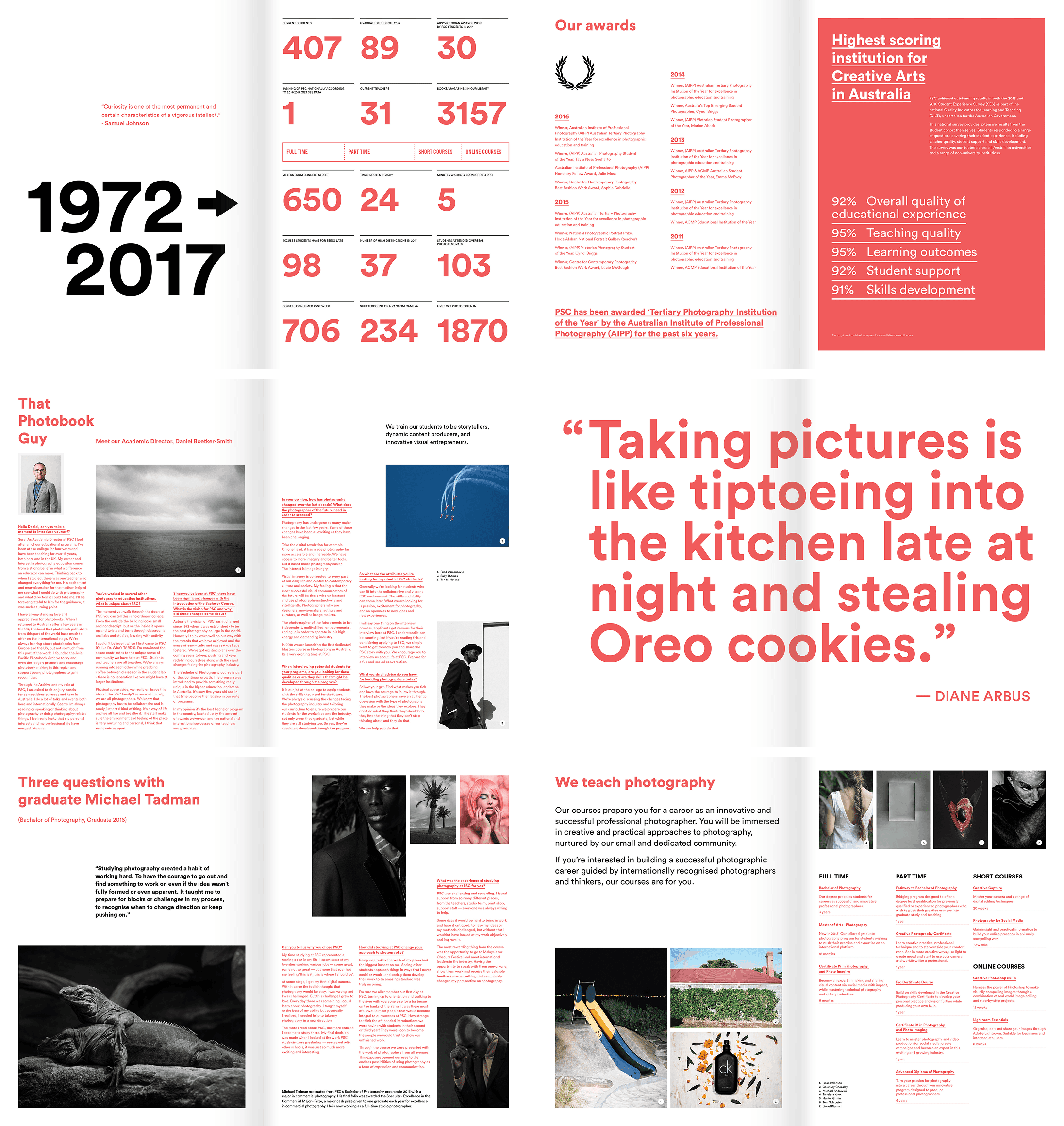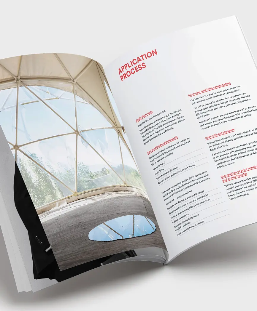 Photography Studies College is one of Australia's leading photography institutions. The brief was to develop a publication for their open day — something more engaging than a standard marketing brochure.