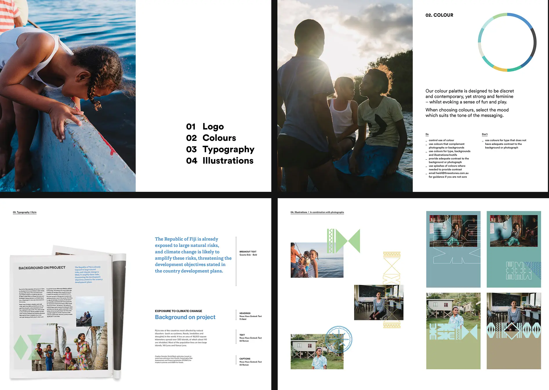 The brief began with an overarching brand identity, Our Home, Our People, from which a full design system was developed across every output of the project. The visual identity was built around the concept of vanua: the deep Fijian understanding of home as land, culture and identity bound together.